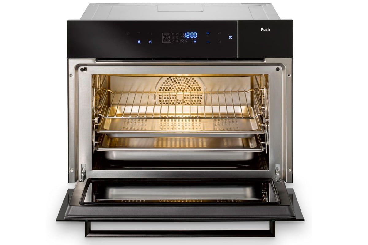 • Функции: духовой шкаф оснащен паровой функцией, грилем, функцией размораживания, функцией поддержания тепла и комбинированной функцией приготовления (COMBO), которая позволяет сочетать два режима приготовления​.