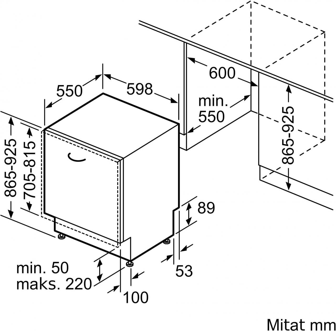 Размеры монтажного пространства Д x ш x В (мм): 865-925 x 600 x 550