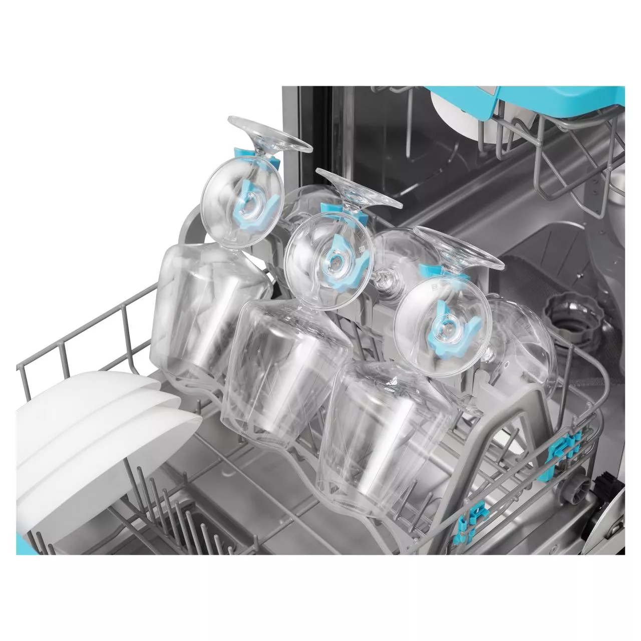 Вместимость до 10 комплектов. Три корзины предоставляют достаточно пространства для размещения различных видов посуды, включая столовые приборы, которые можно удобно разместить на специальной полке C-Shelf. Держатель для бокалов обеспечивает безопасное и надежное размещение.